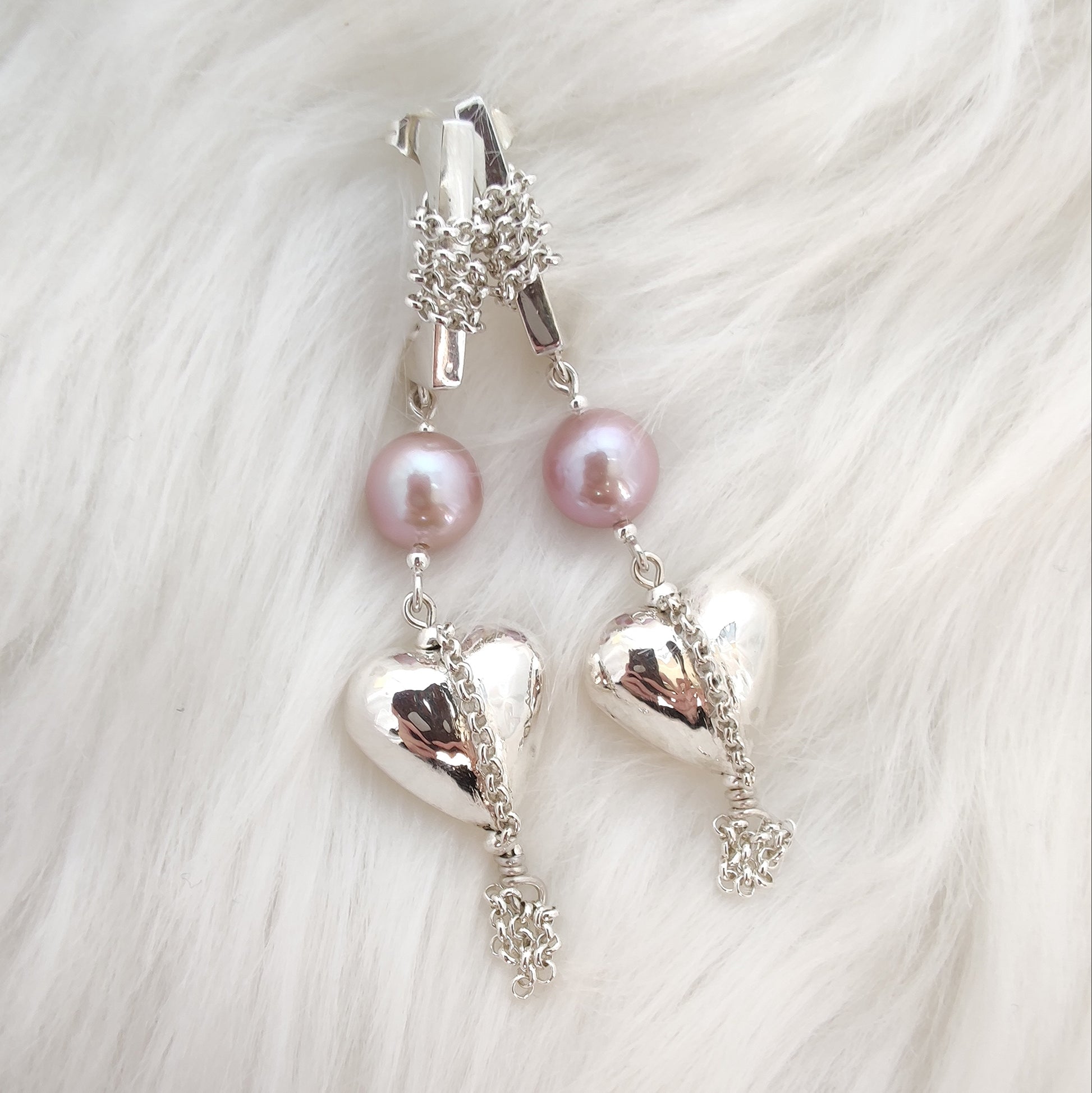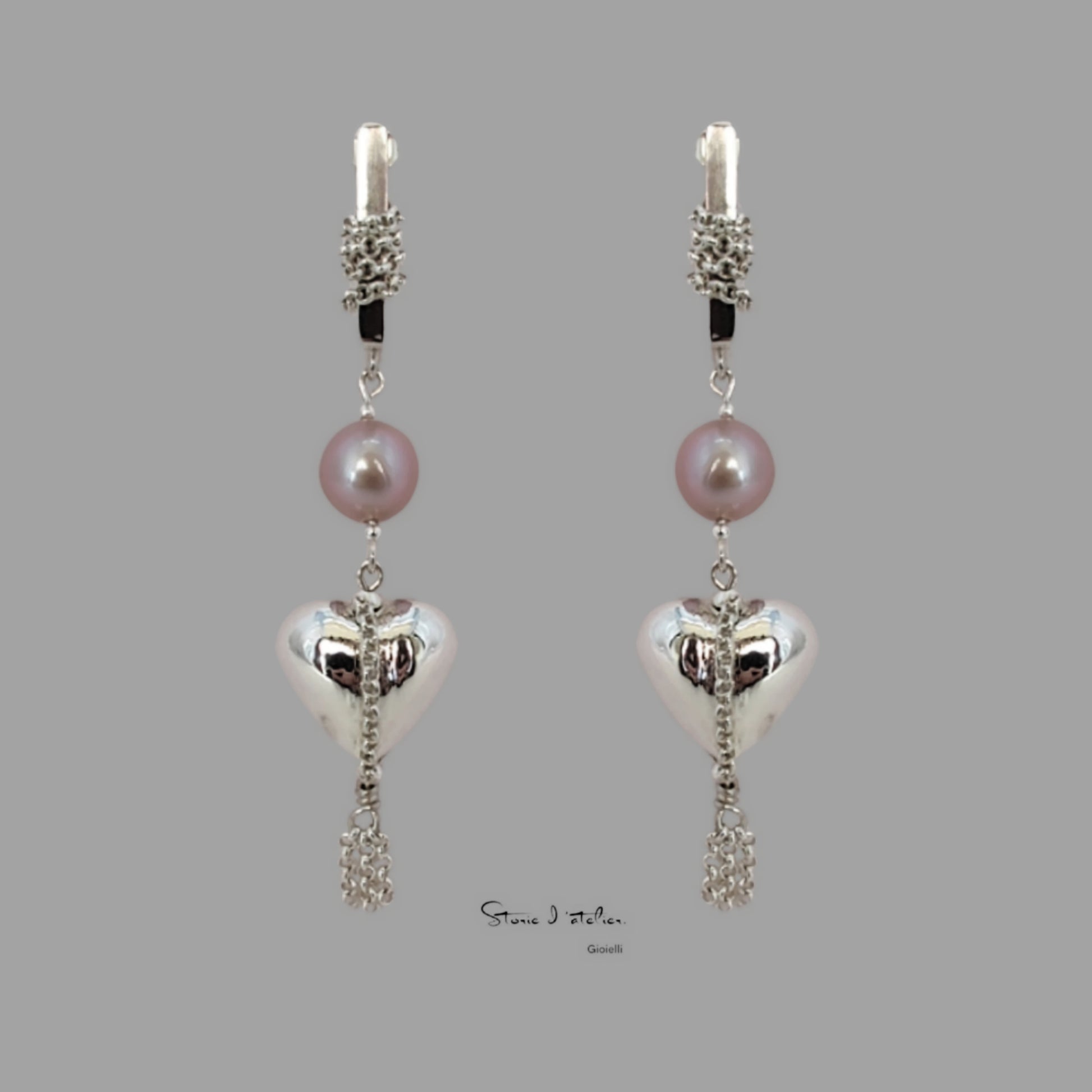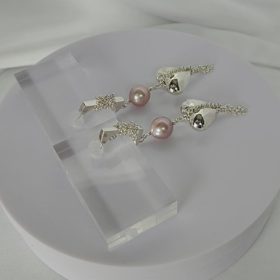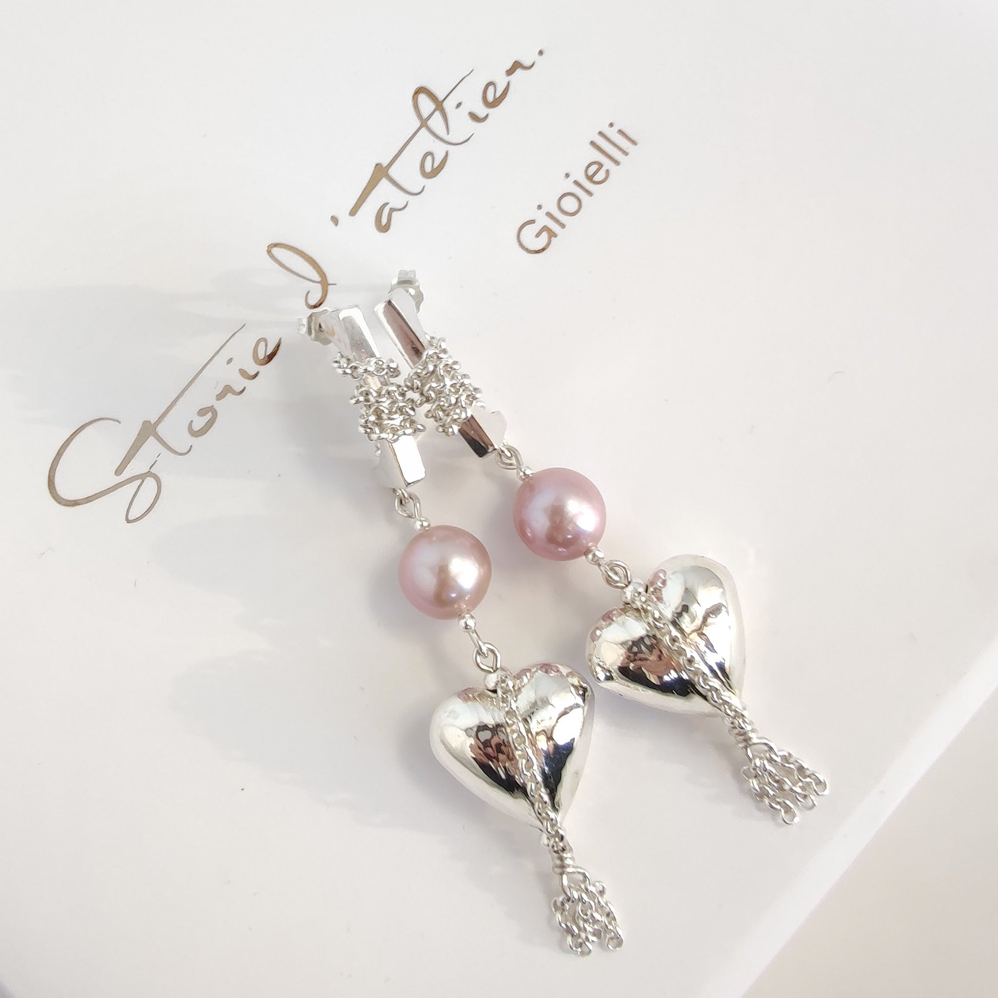 ST57 - Orecchini in argento 925 con perle d'acqua dolce color rosa antico