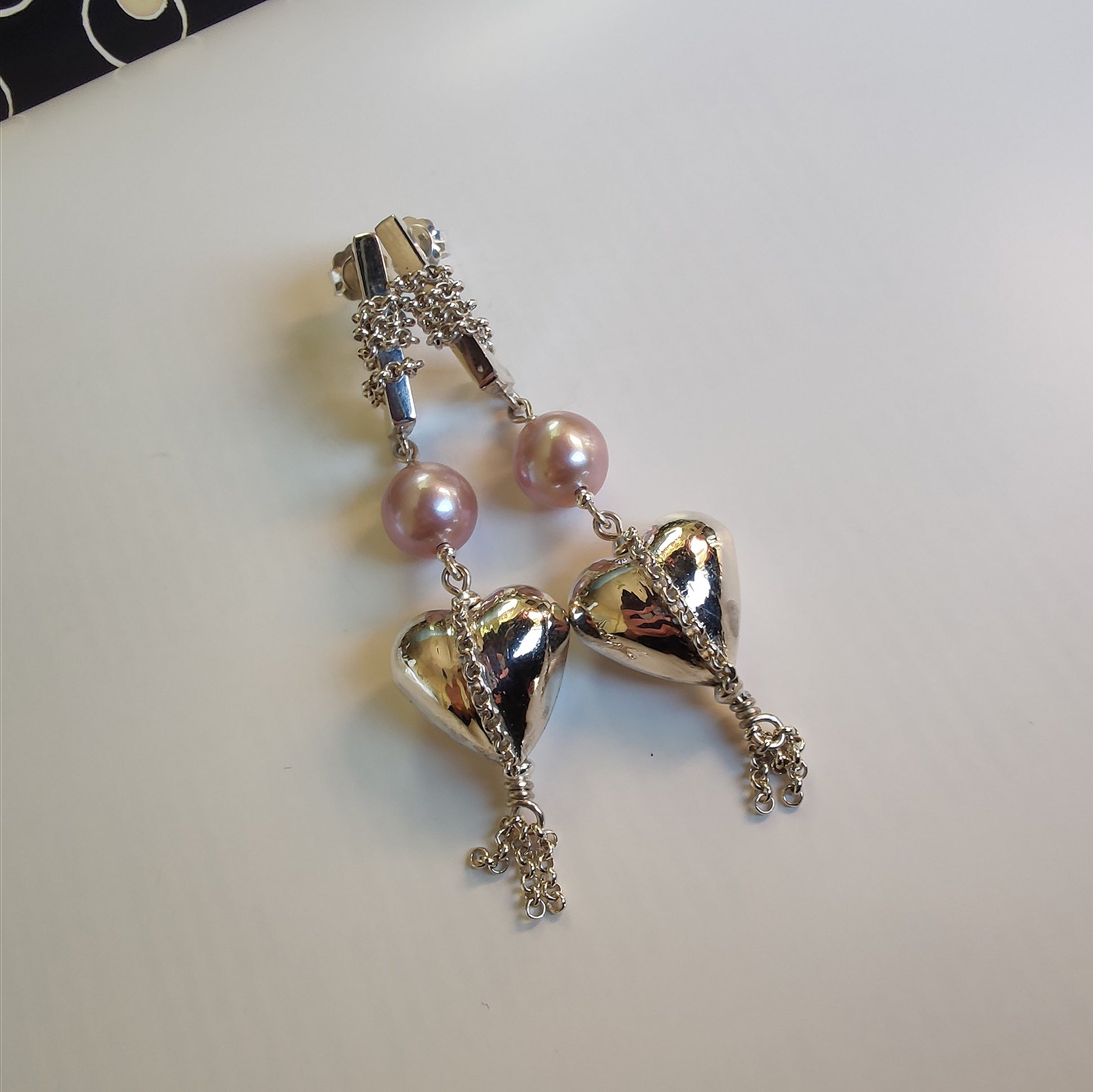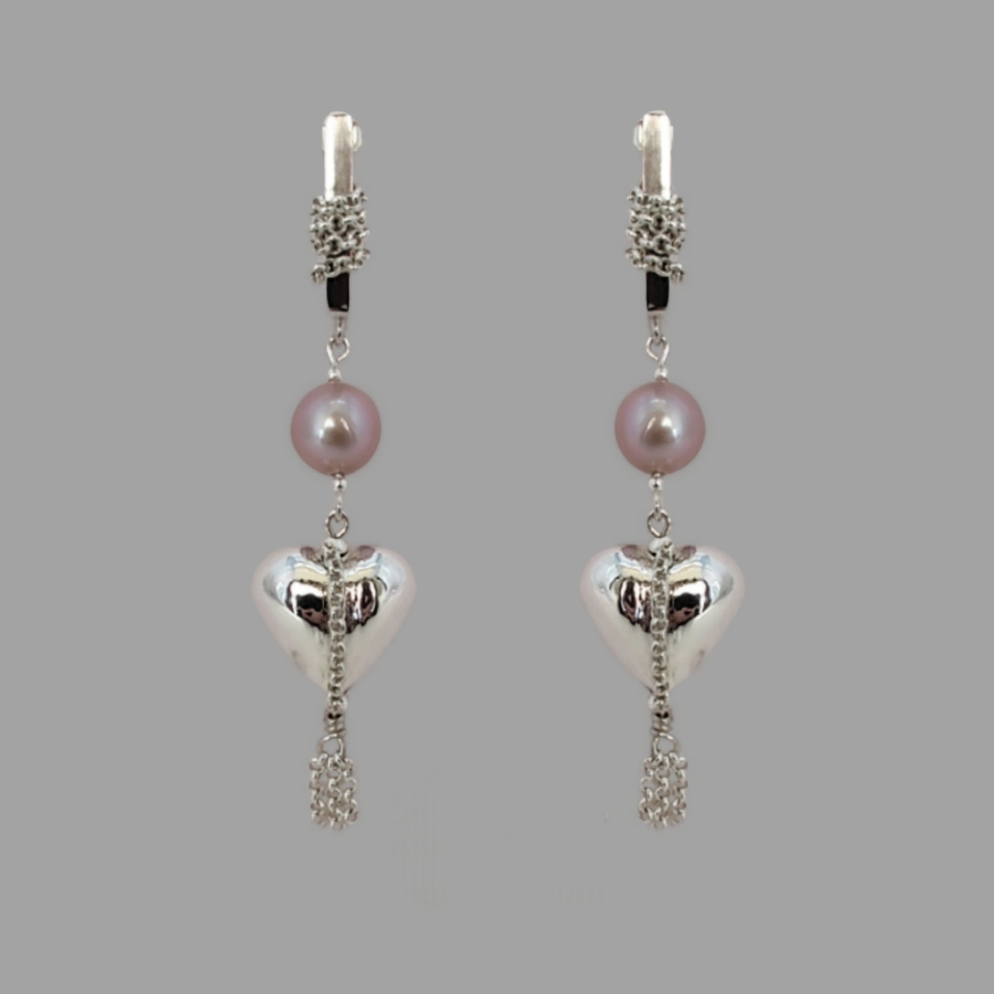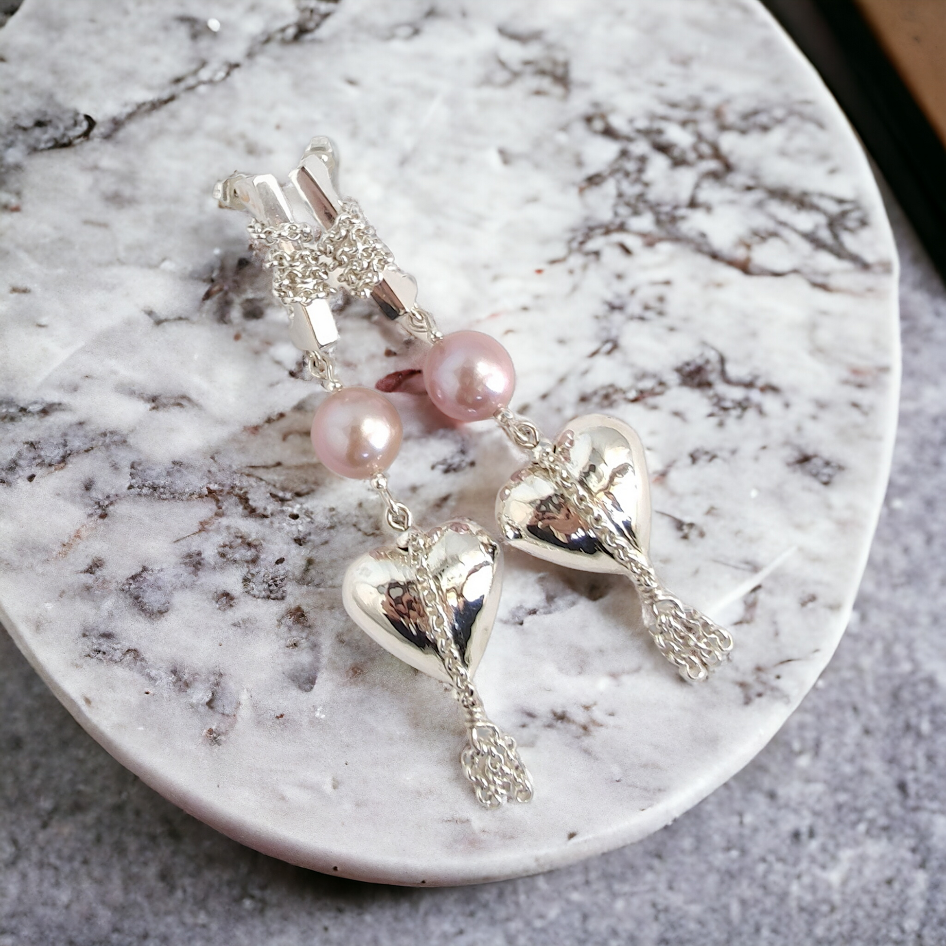 ST57 - Orecchini in argento 925 con perle d'acqua dolce color rosa antico