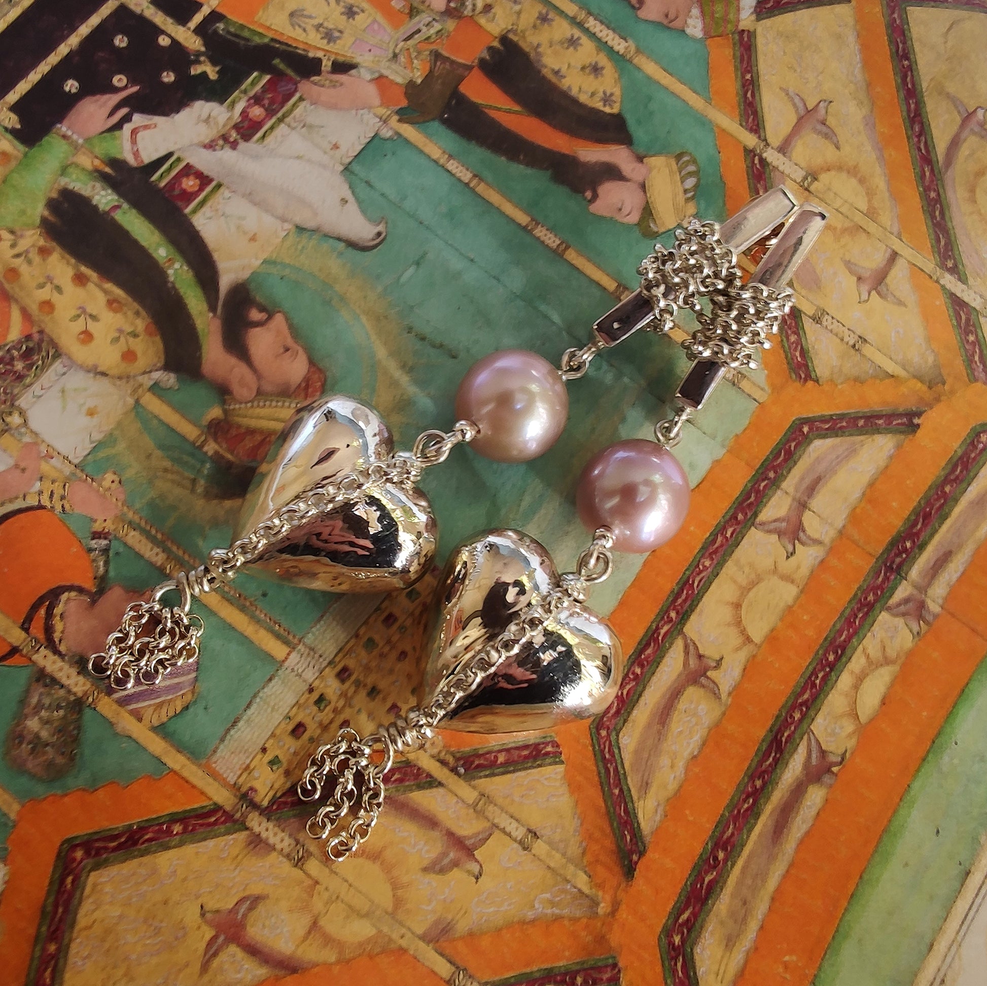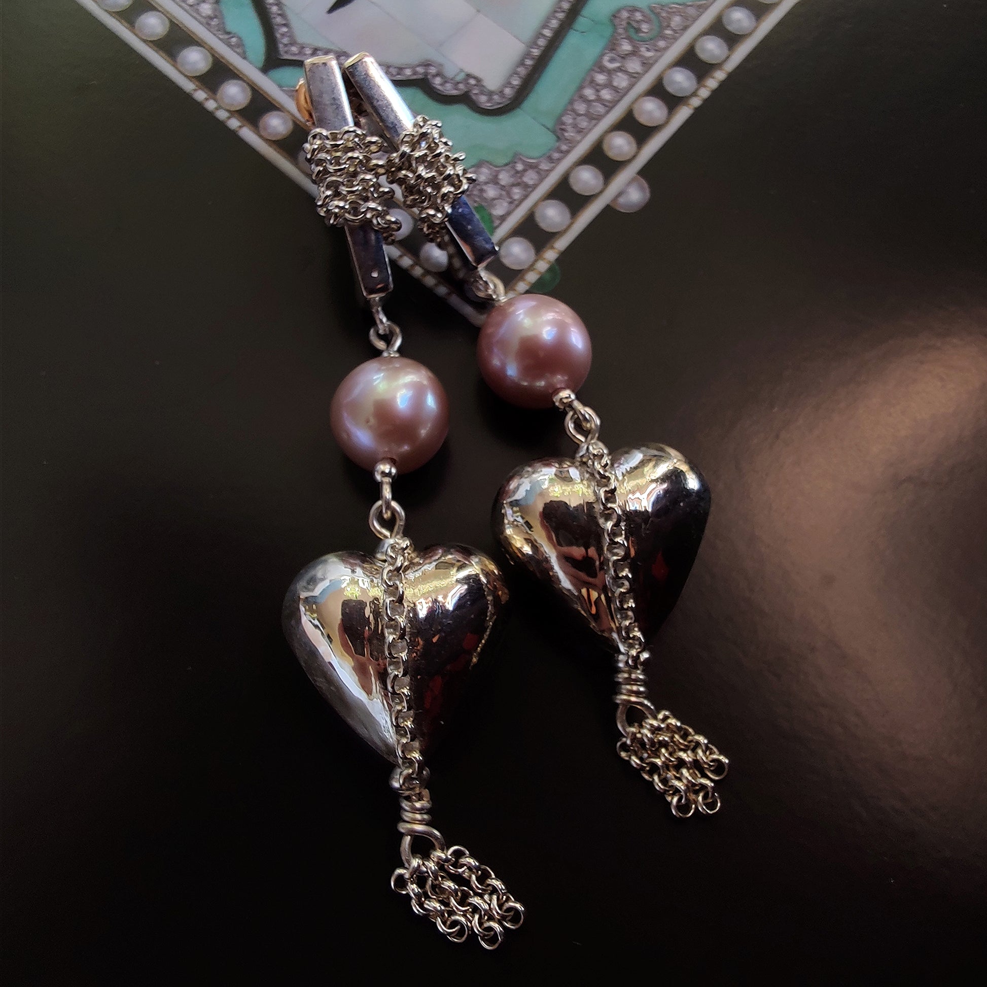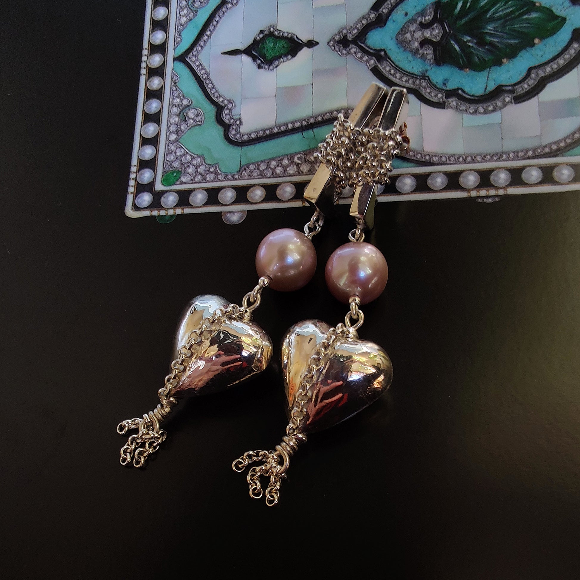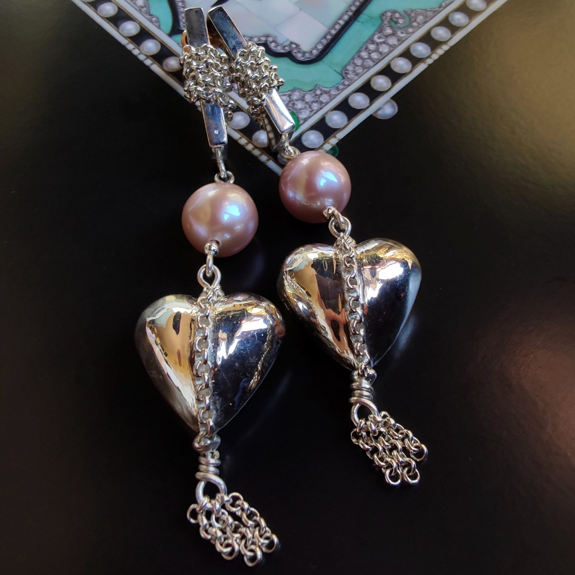 ST57 - Orecchini in argento 925 con perle d'acqua dolce color rosa antico