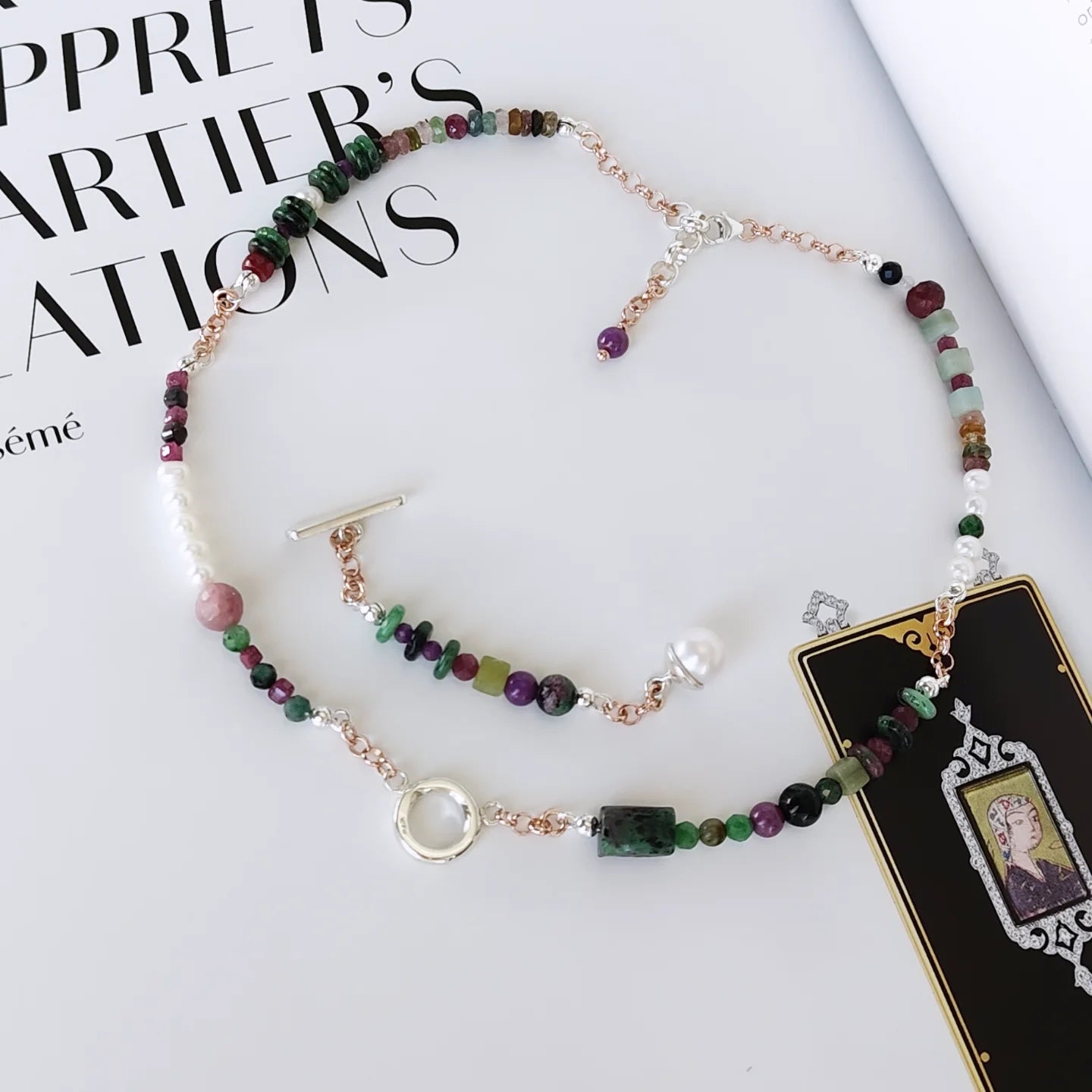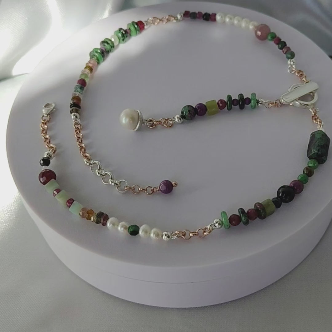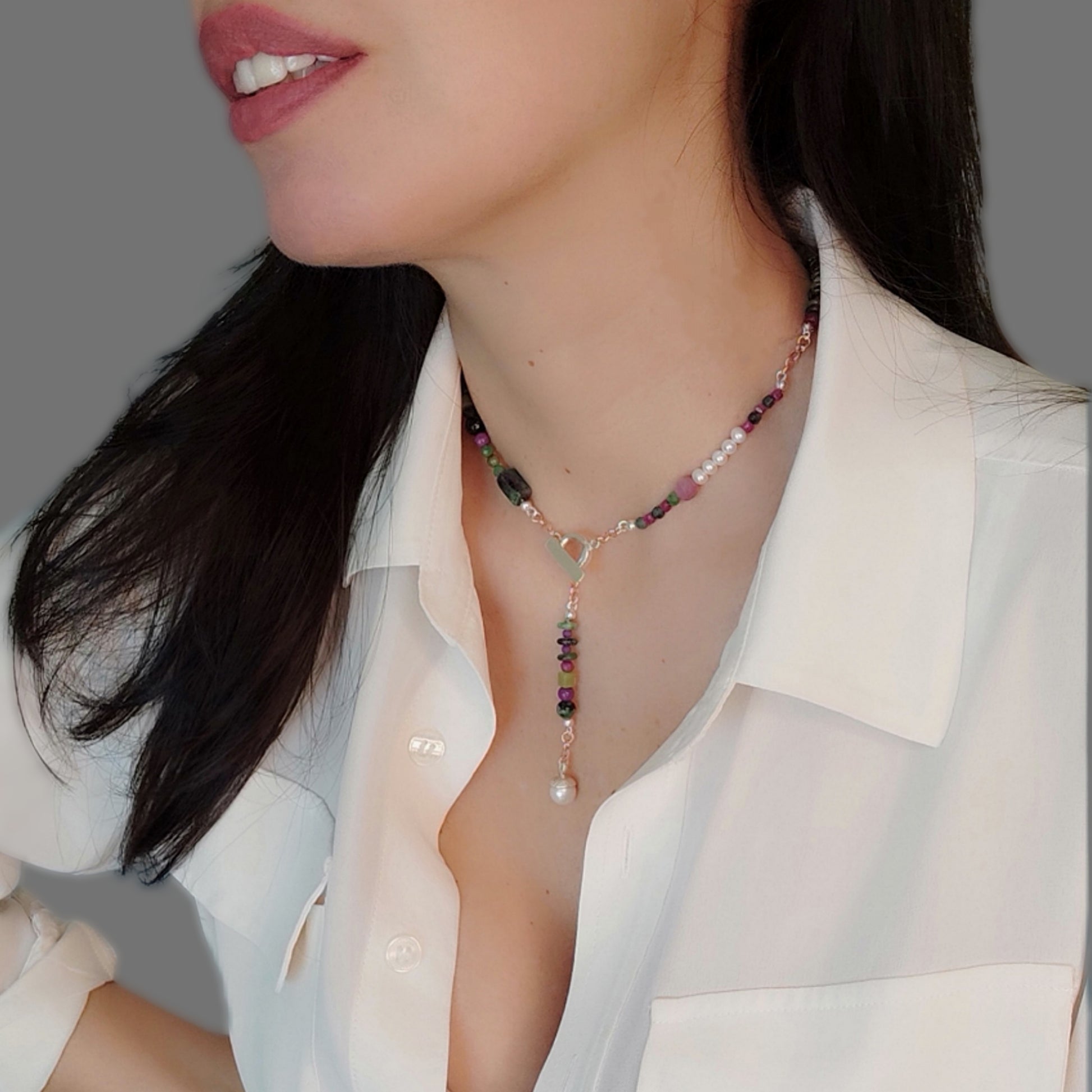 Collana Componibile in Argento 925 e Oro Rosa 18k con Pietre Naturali – Modello a T