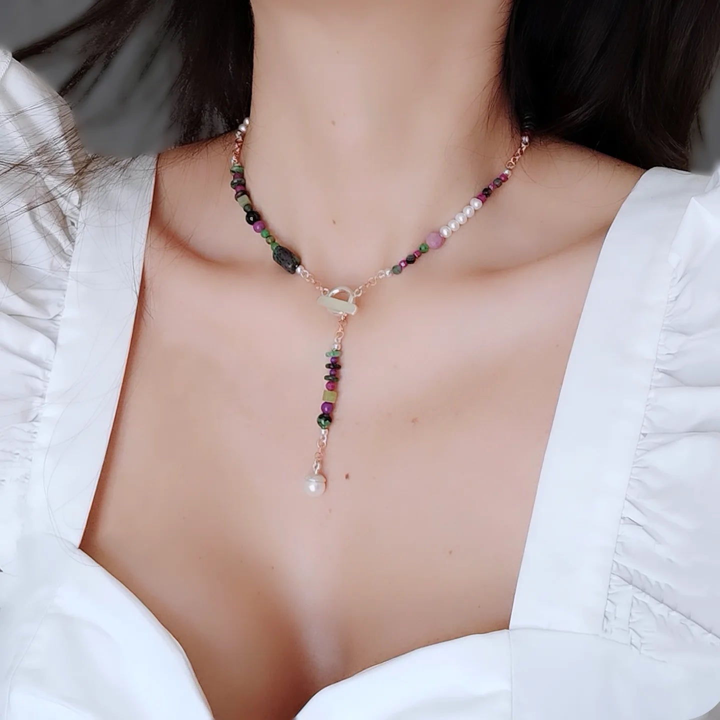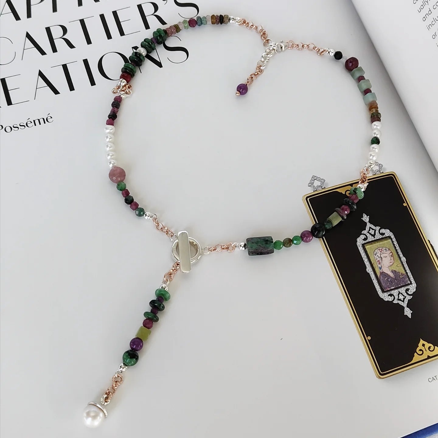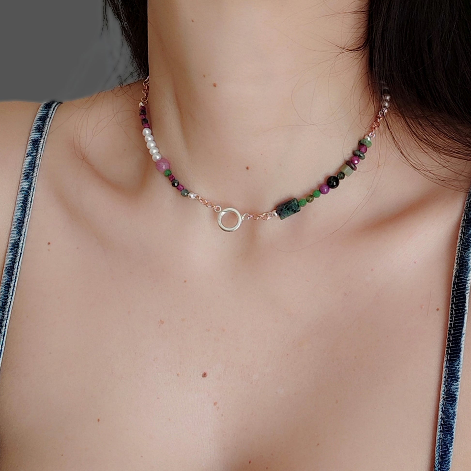 Collana Componibile in Argento 925 e Oro Rosa 18k con Pietre Naturali – Modello a T