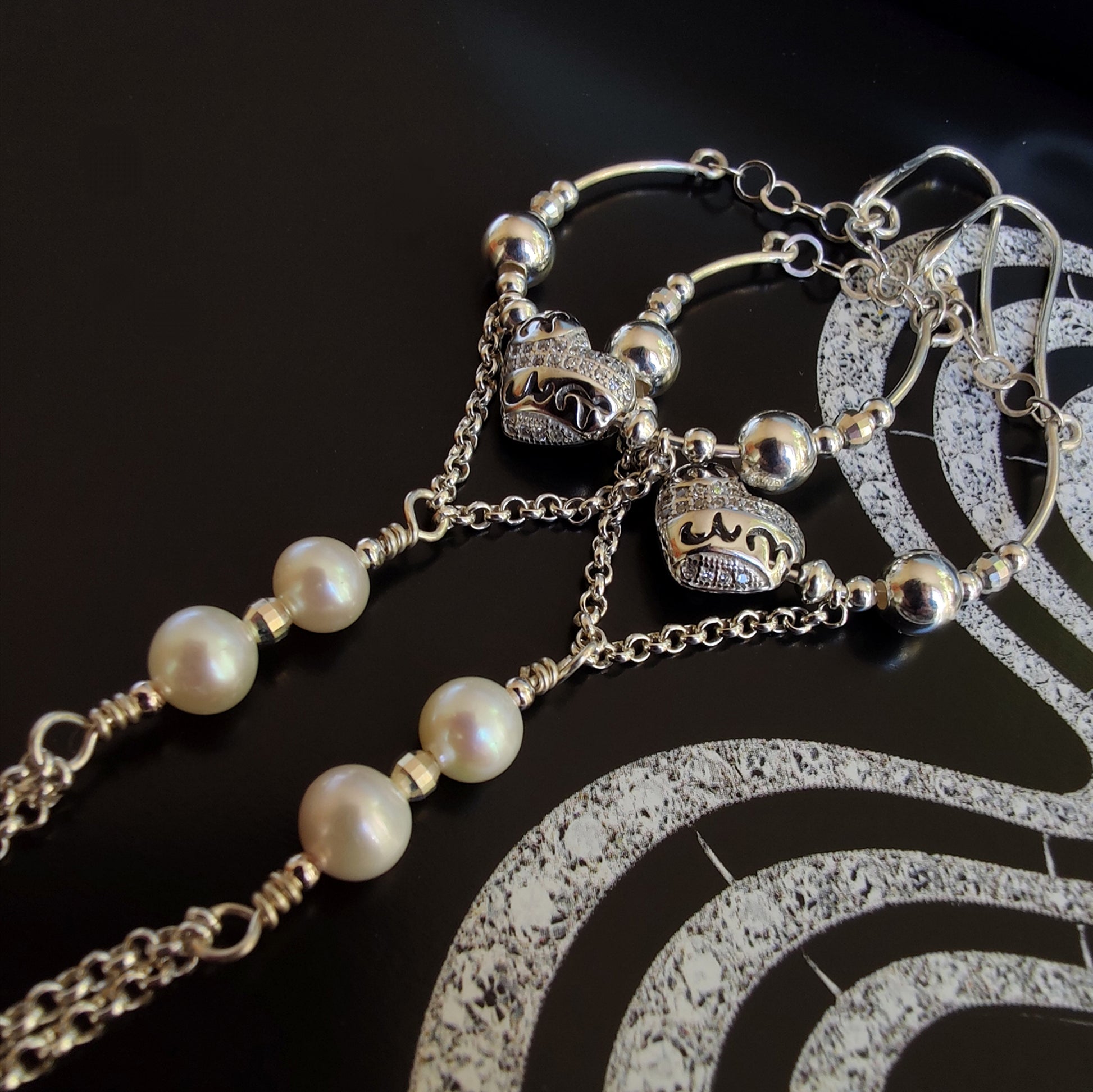 Orecchini in argento 925 con perle d'acqua dolce e zirconi.
