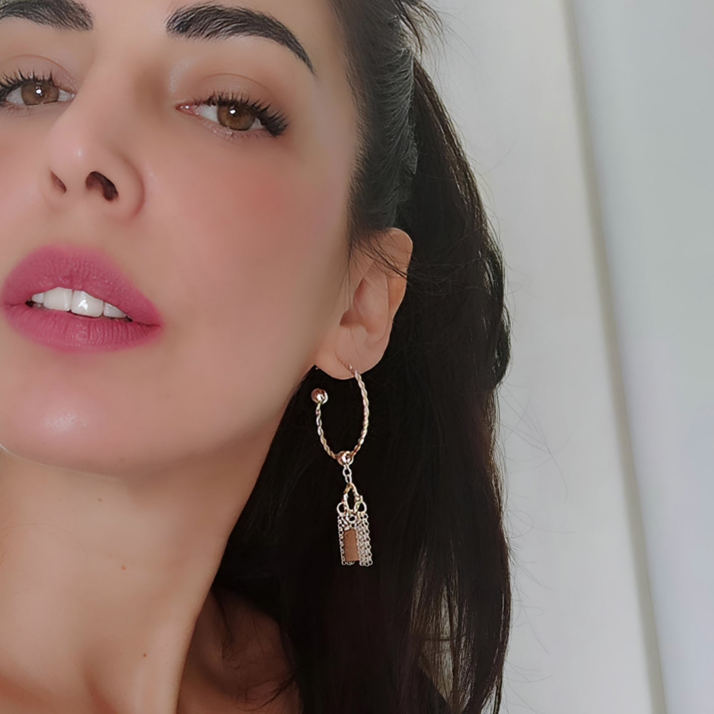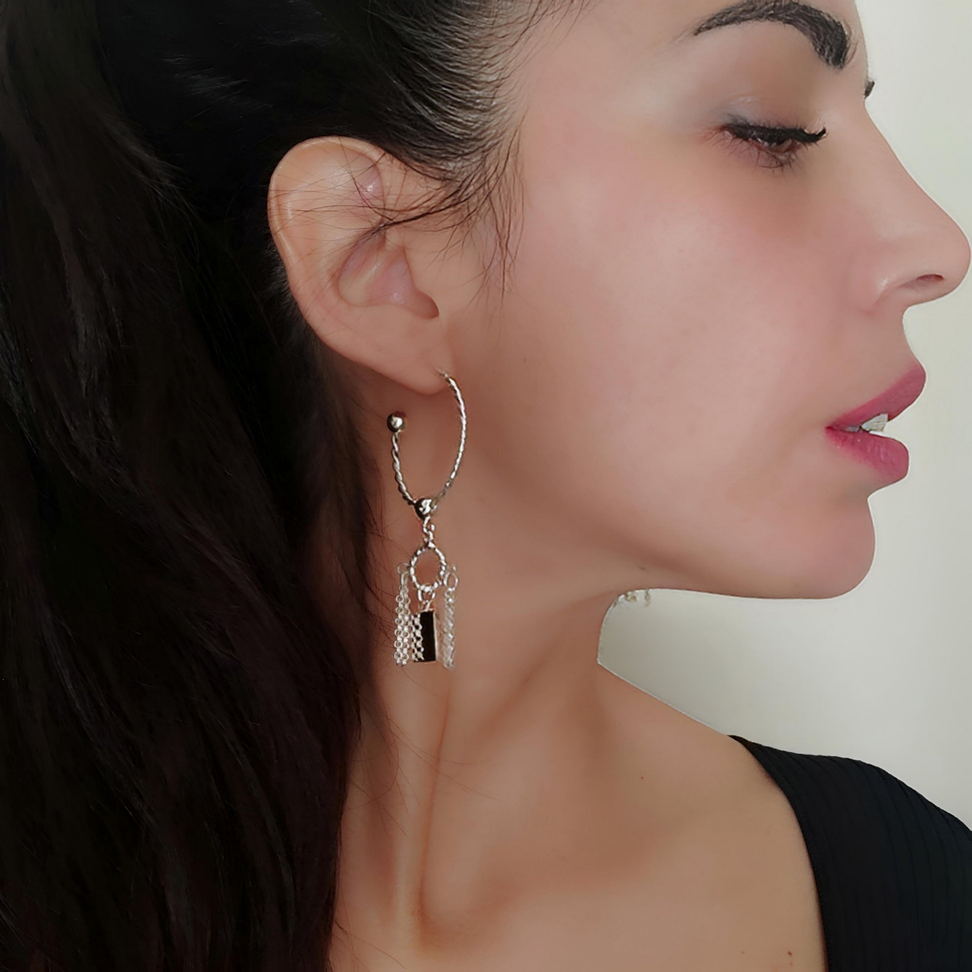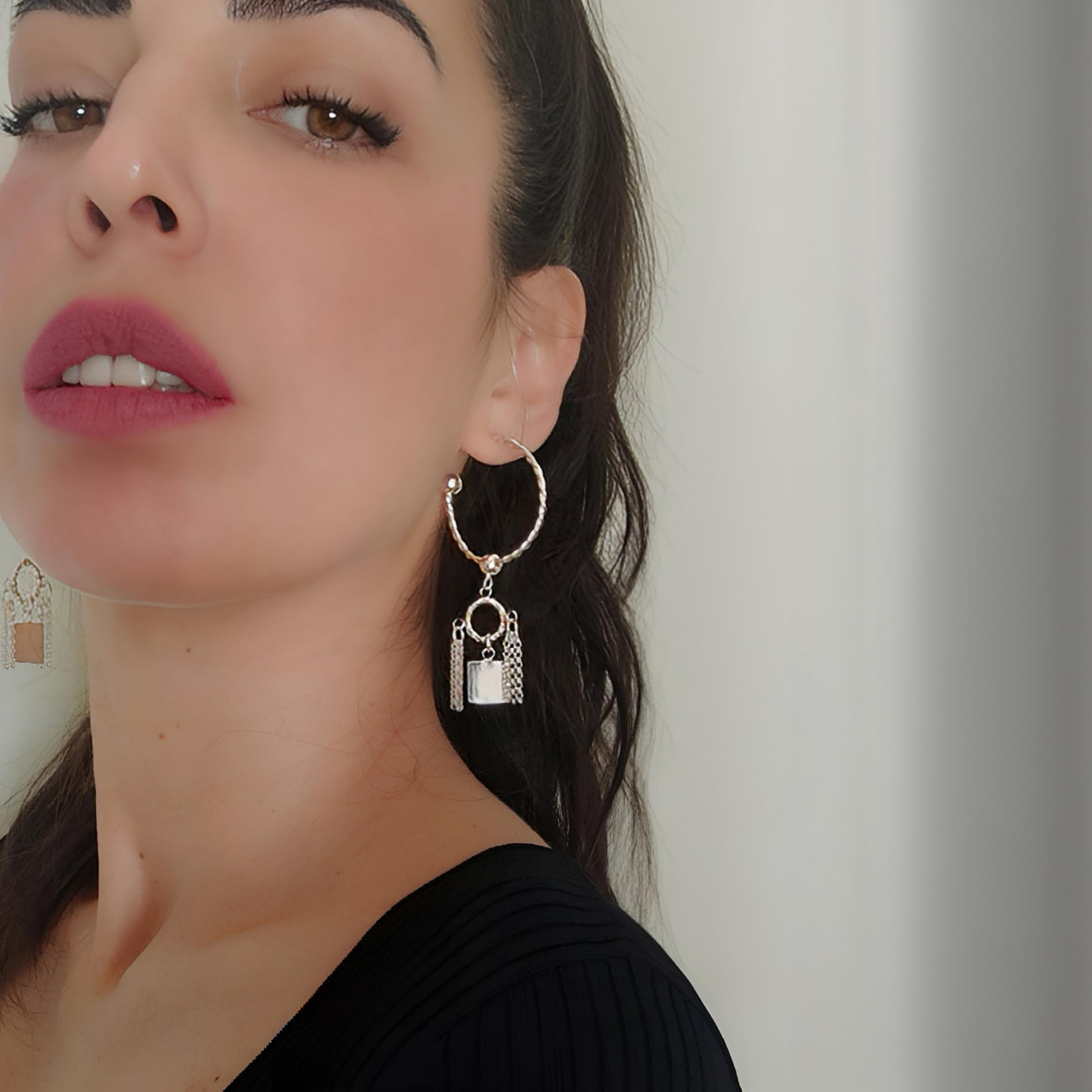 Dallo spirito contemporaneo e audace, questi orecchini a cerchio in argento 925 sono un perfetto equilibrio tra eleganza e design innovativo. Realizzati interamente a mano, ogni dettaglio è curato con la massima attenzione, dalle morbide linee del cerchio intrecciato agli elementi decorativi che pendono con grazia. Un design che si distingue per la sua unicità, pensato per chi ama indossare gioielli che raccontano storie moderne e sofisticate.