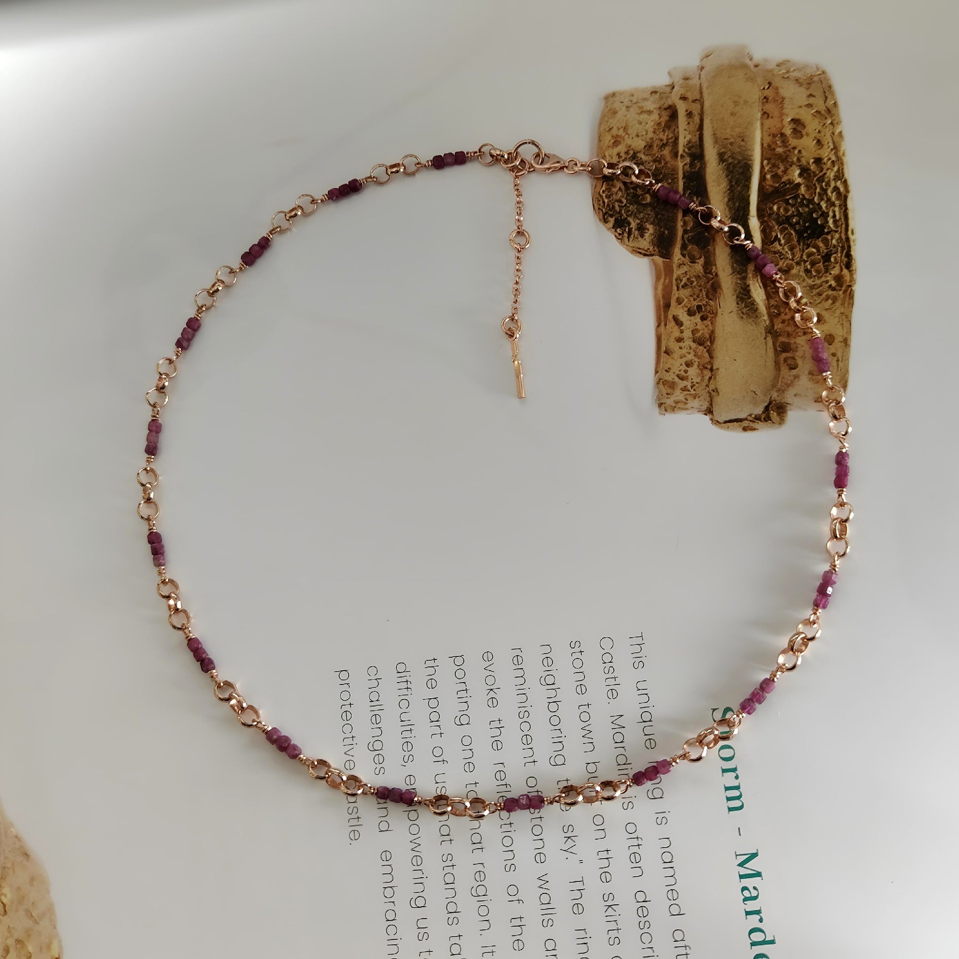ST011 - Choker in Argento 925 Placcato Oro Rosa con Rubini Cubici Naturali