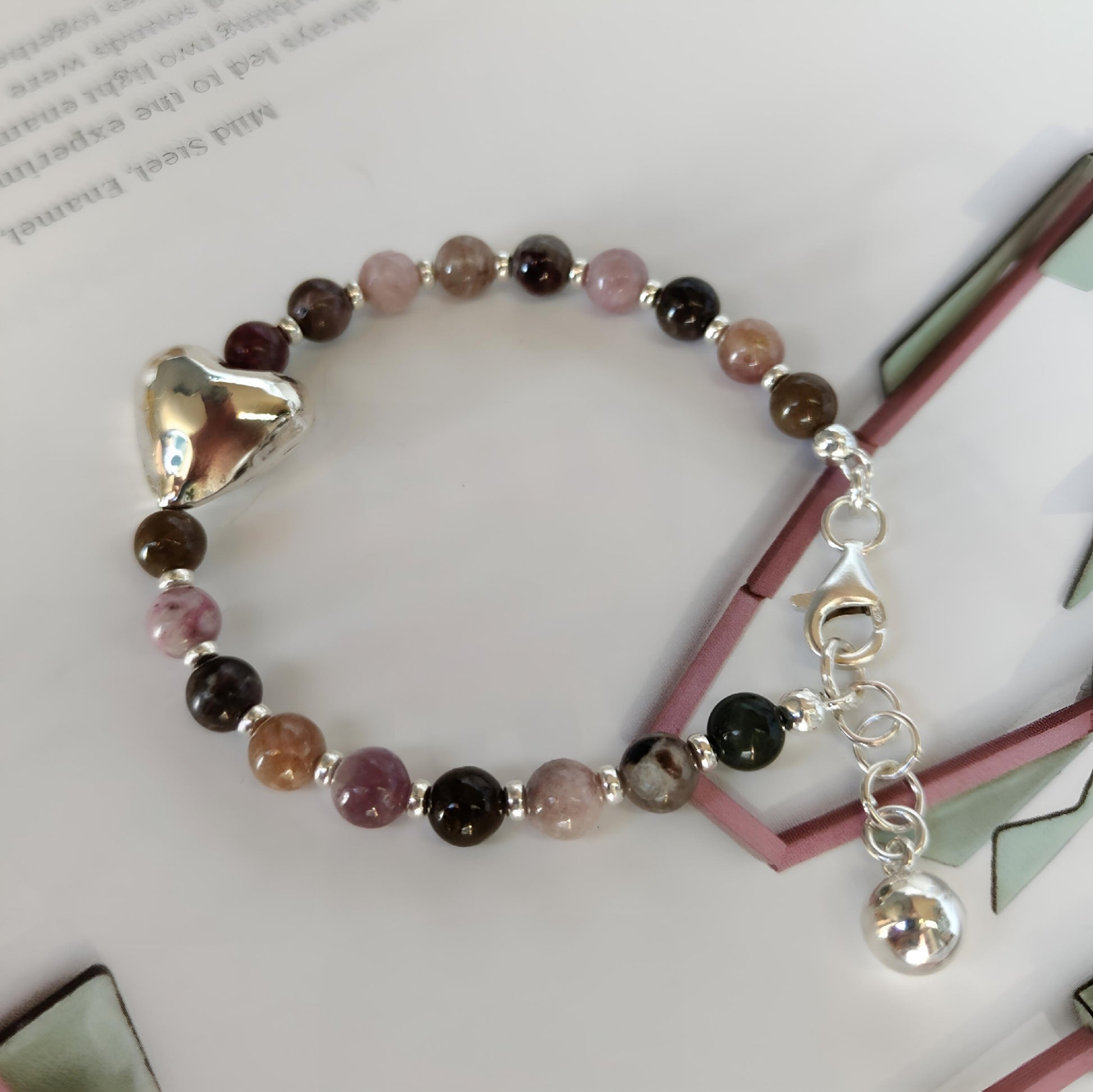 Un incontro perfetto tra argento 925 e pietre di tormalina multicolore, questo bracciale artigianale è un vero e proprio tributo alla bellezza della natura. Ogni perla, liscia e tonda, è selezionata per mettere in risalto le sfumature uniche della tormalina, che spaziano dal rosa tenue al verde profondo, con accenti di marrone e viola, creando un gioco di colori dinamico e affascinante.
