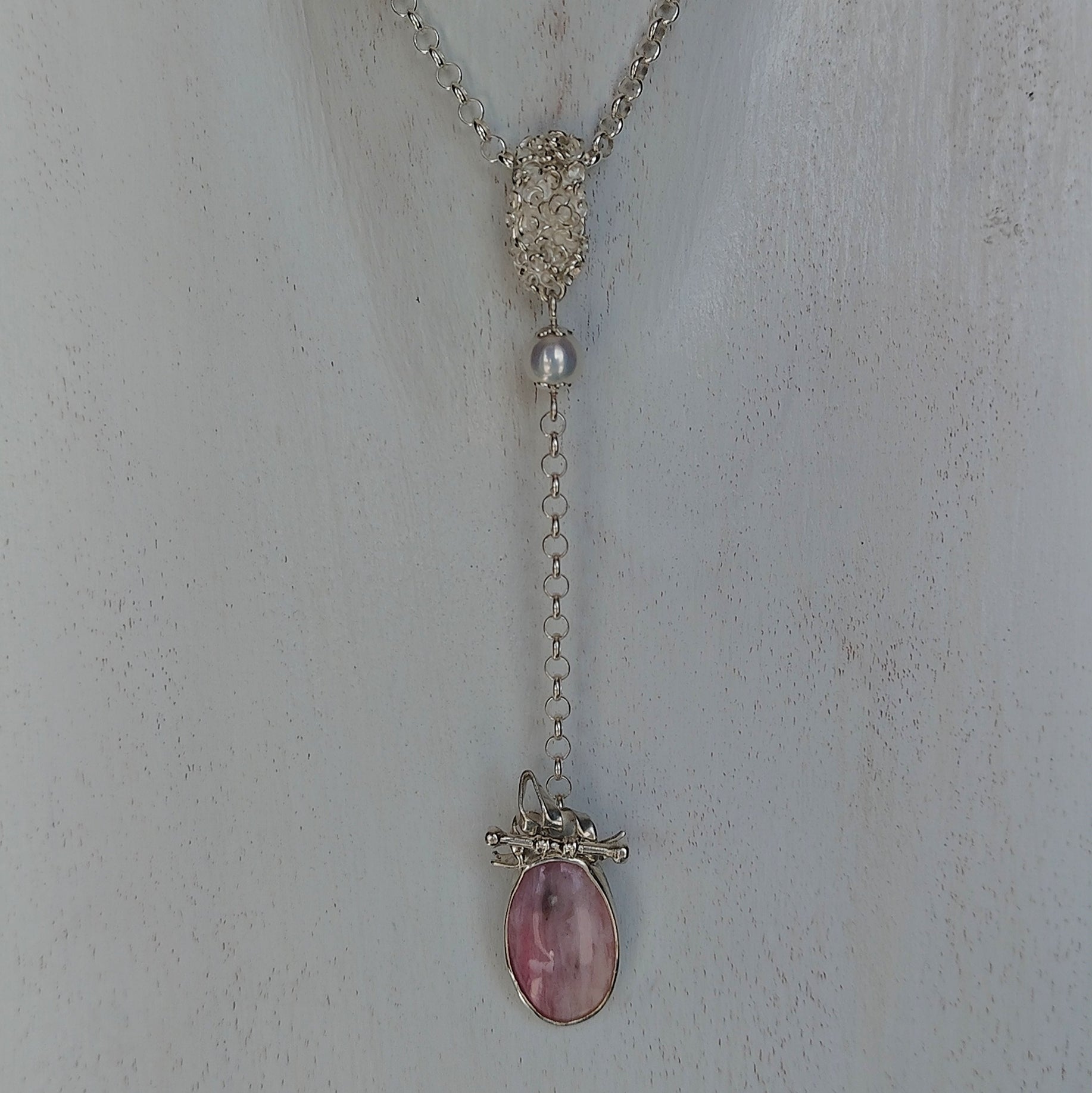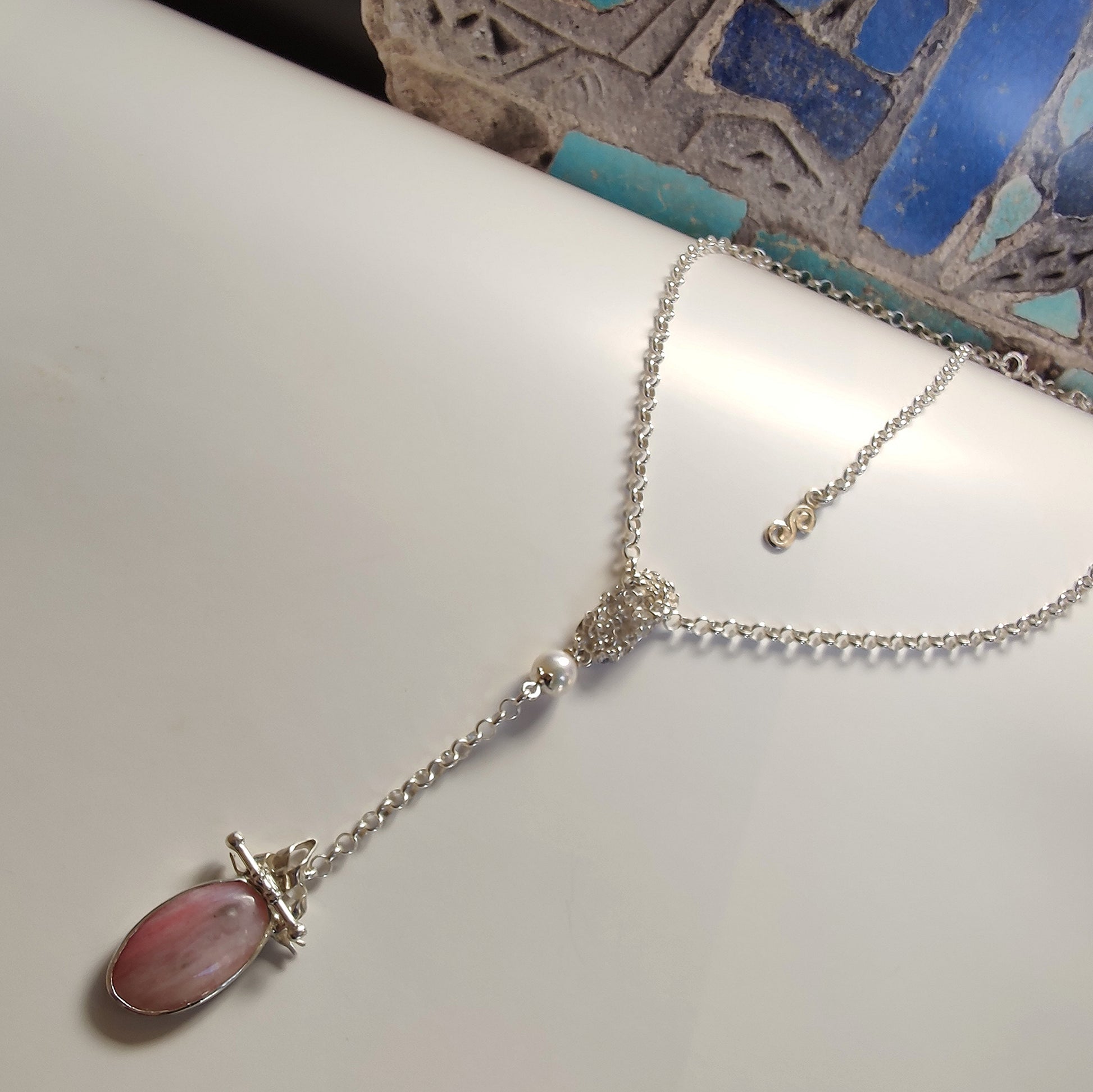 Collana in argento 925 con perla d'acqua dolce e Quarzo Rosa.
