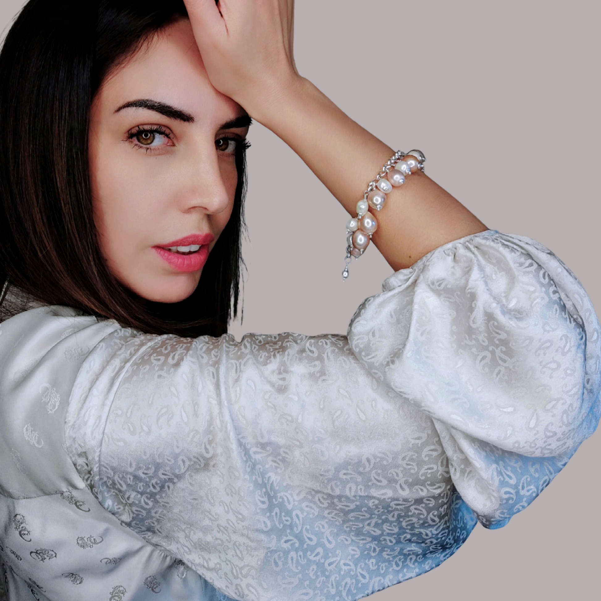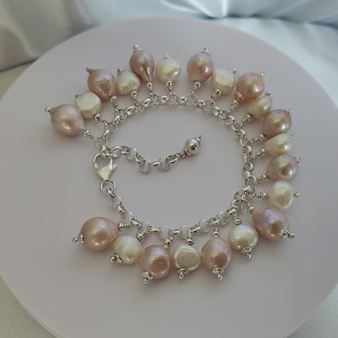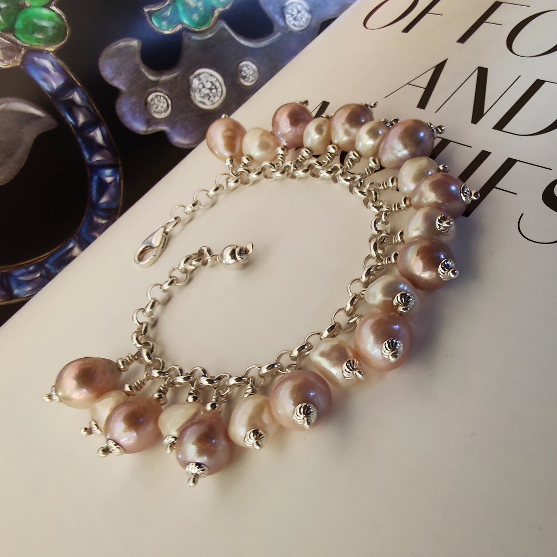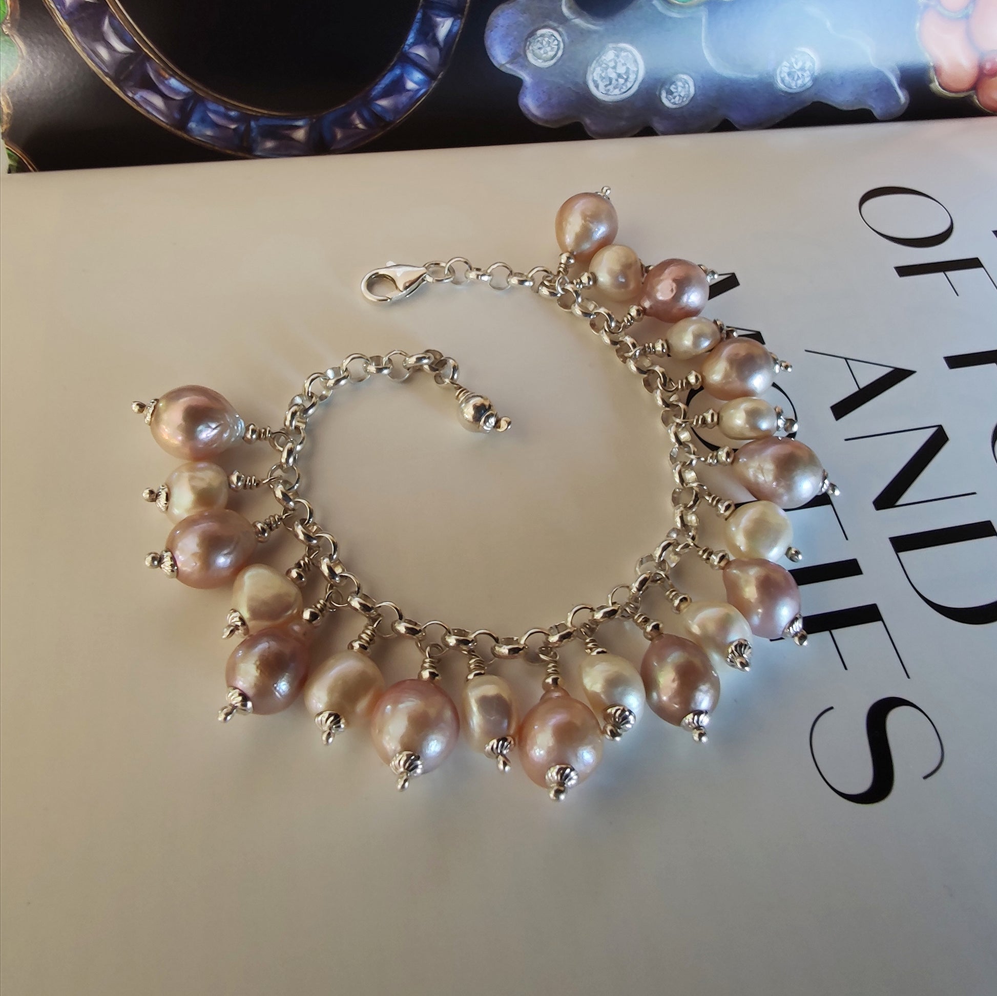 Bracciale in argento 925 con perle d'acqua dolce colore rosa antico e bianche.