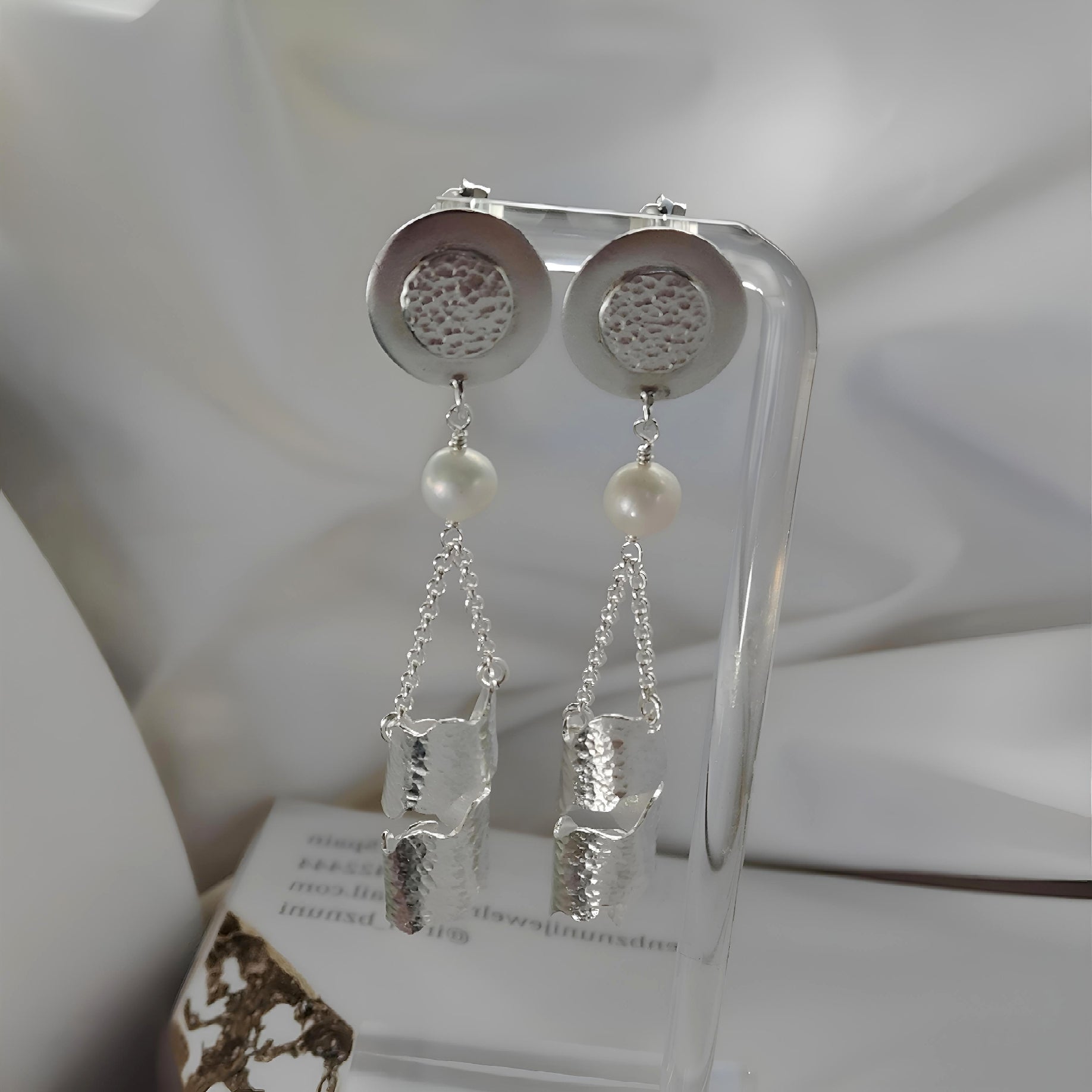 ST69 - Orecchini in argento martellato 925 con perle d'acqua dolce
