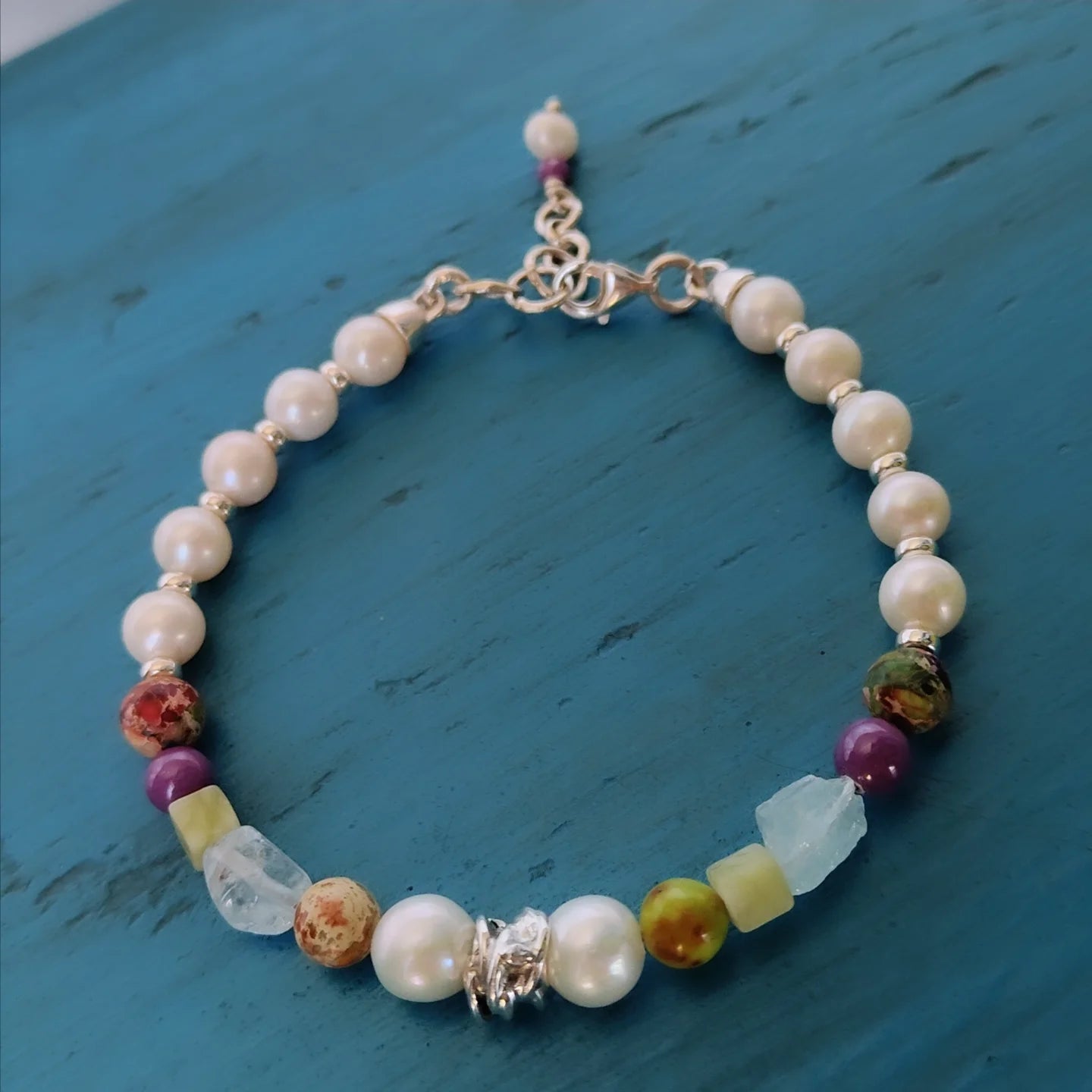 ST4 - Bracciale in Argento 925 con Gemme Naturali e Perle d’Acqua Dolce