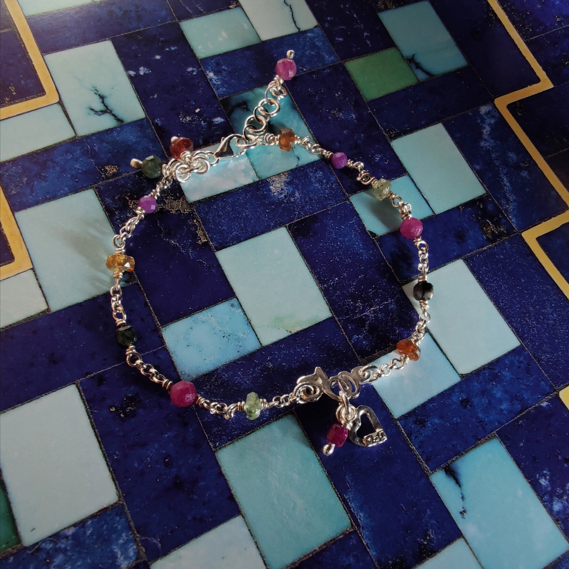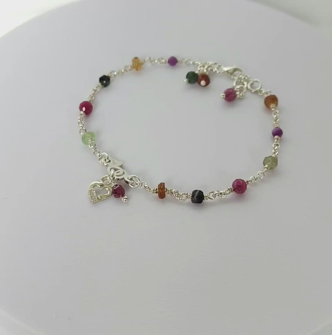Bracciale in argento 925 con pietre naturali in tormalina multicolore